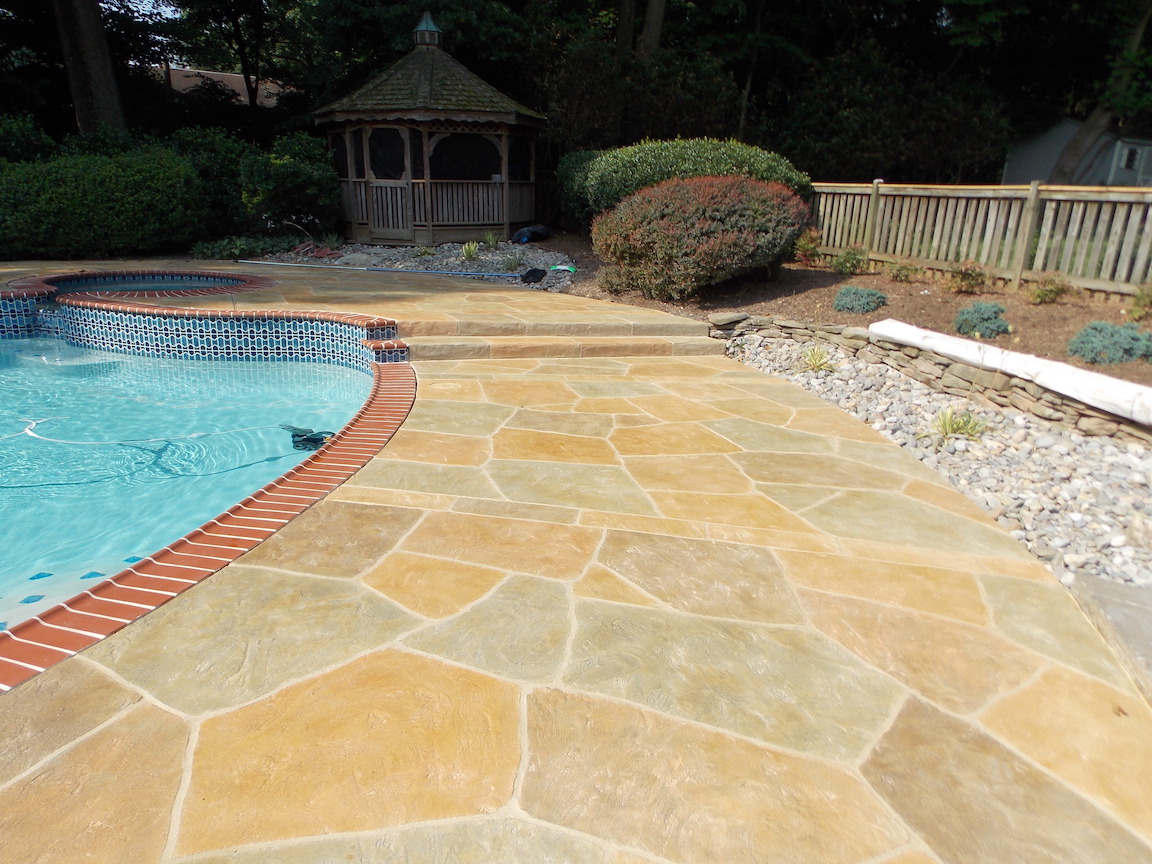Over time, continuous exposure to it could break down the surface of the deck and weaken the concrete. Even salt from salt-water pools could weaken concrete pool decks and cause white, powdery stains.